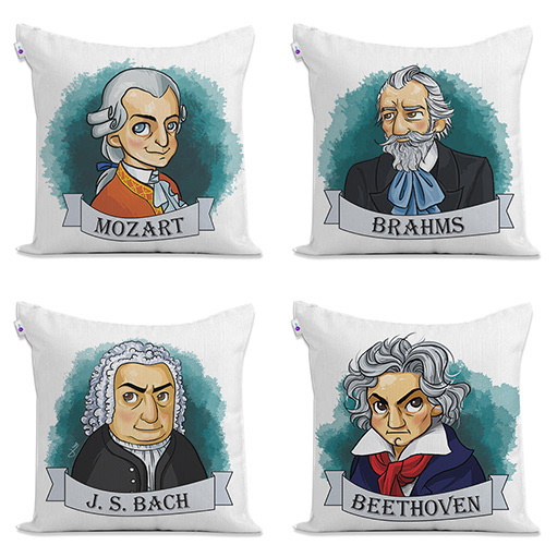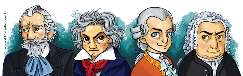 Illustration created for a Classical Music collection inspired by compositors: Ludwig van Beethoven, Johannes Brahms, Wolfgang Amadeus Mozart and Johann Sebastian Bach.